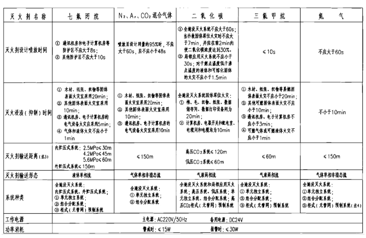 气体灭火系统技术性能表(续表)
