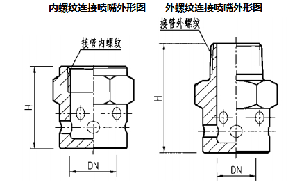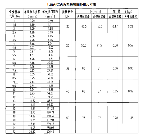 说明:七氟丙烷灭火系统喷嘴外形图依据广东平安消防设备有限公司提供的技术资料绘制。其他企业喷嘴外形及外形尺寸可能不完全相同。