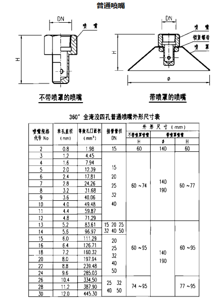 说明:1.喷嘴采用螺纹连接。有内螺纹和外螺纹两种形式。