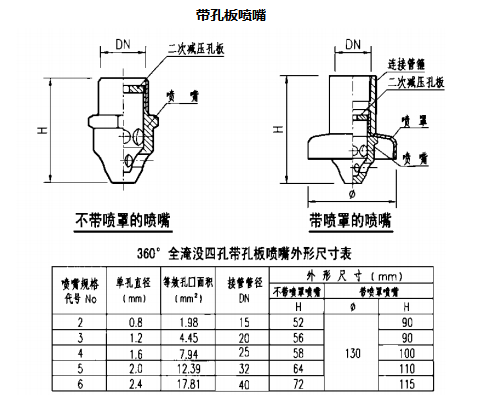 4.本图普通喷嘴依据上海金盾消防安全设备有限公司提供的技术资料进行编制;带孔板喷嘴依据浙江信达可恩消防实业有限公司提供的技术资料进行编制。其他企业喷嘴外形和外形尺寸可能略有差异,但等效孔口面积及单孔直径是一致的。