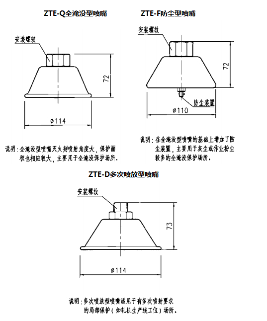 说明:高压、低压二氧化碳灭火系统专用喷嘴依据南京消防器材股份有限公司提供的技术资料绘制。