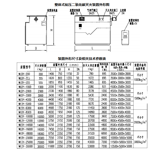 说明:1.灭火剂储量≥5t的装置控制柜在装置外独立安装,其外形尺寸为600×600×1800(h)。