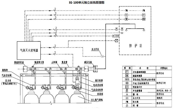 IG-100气体灭火单元独立系统自动控制说明: