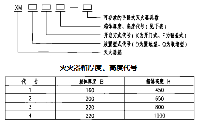 注:带灭火器箱组合式消防柜型号表示方法详见国标图集04S202《室内消火栓安装》。