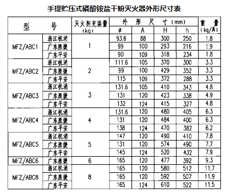 说明:1.本图未编入手提式碳酸氢钠干粉灭火器产品。如需采用请直接与参编企业联系。