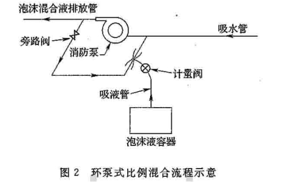 3.4.5 在泡沫灭火系统工程中,环泵式比例混合器是利用文丘里管原理的第一代泡沫比例混合器产品。其流程如图2所示。