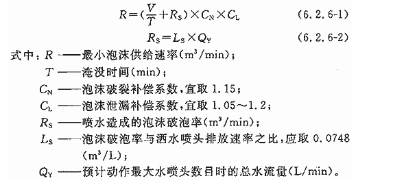 6.2.6 本条中的最小泡沫供给速率的计算公式,借鉴了国外相关标准的规定。现将式中各参数与系数的含义说明如下: