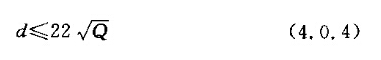 4.0.4 为使干粉灭火系统管道内干粉与驱动气体不分离,干粉-驱动气体二相流要维持一定流速,即管道内流量不得小于允许最小流量Qmin,依此等效采用了英国标准推荐数据。《室内灭火装置和设备·干粉系统规范》BS 5306 :pt7-1988 § 7给出对应DN25管子的最小流量Qmin为1.5kg/s。 DN25管子的内径d是27mm,由此得管径系数