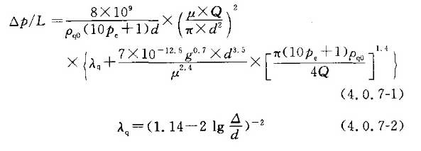 4.0.7 管网中各管段单位长度上的压力损失可按下列公式估算: