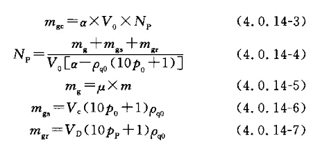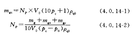 4.0.14 非液化驱动气体在储瓶内遵从理想气体状态方程,所以可按公式(4.0.14-1)和公式(4.0.14-2)计算驱动气体储存量。液化驱动气体在储瓶内不遵从理想气体状态方程,所以应按公式(4.0.14-3)和公式(4.0.14-4)计算驱动气体储存量。