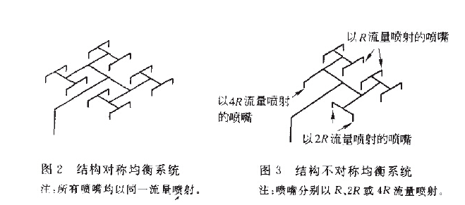 应该指出:在调研中也见到了非均衡系统,但本规范主张管网应尽量设计成对称分流的均衡系统,所以前半句采用“宜”字;均衡系统可以是对称结构,也可以是不对称结构,结构对称与不对称的分界在对称度,所以后半句采用“应”字。
