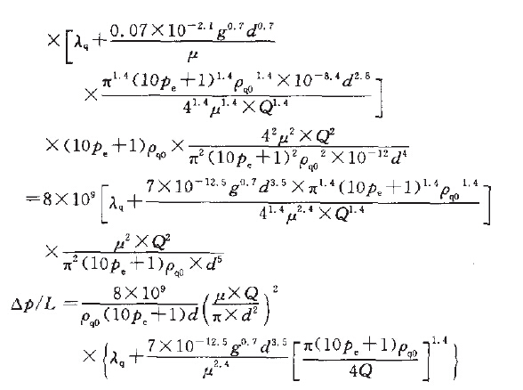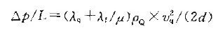 公式来自周亨达主编《工程流体力学》,北京:冶金工业出版社1995年出版,P120。应该指出:当厂家以实测曲线图给出△p/L之值时,应该采用厂家提供的数据。