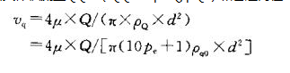 驱动气体在管道中的流速vq可由其体积流量QQV (QQV = μ×Q/ρQ )和管道内径d表示,即有: