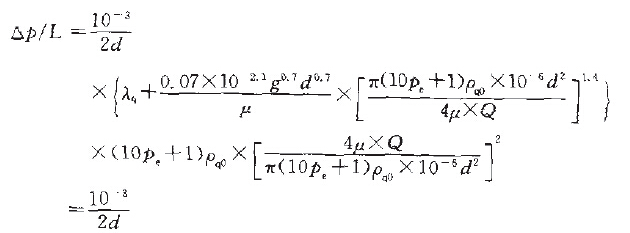 式中:△p/L ——管段单位长度上的压力损失(Pa/m)。当μ=0.0286~0.143时,有: