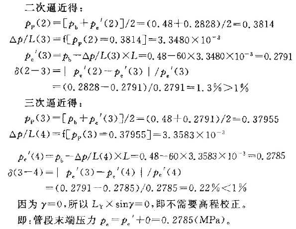 为求得高程校正前管段首端压力Pb真值,应采用逐步逼近法。逼近误差当然是越小越好,公式(4.0.9-2)已满足工程要求。