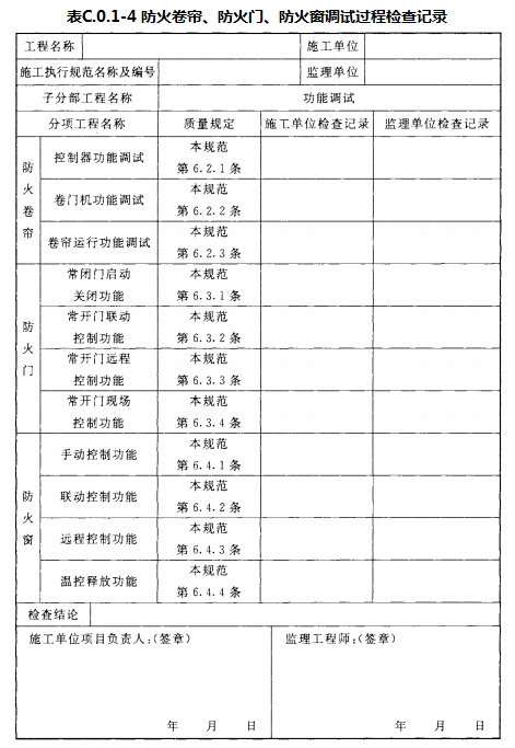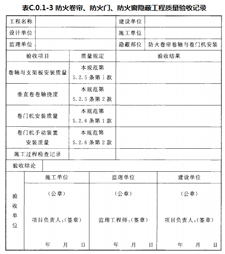 附录C 防火卷帘、防火门、防火窗施工过程检查记录