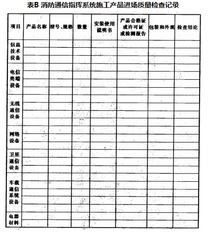 附录B 消防通信指挥系统施工产品进场质量检查记录