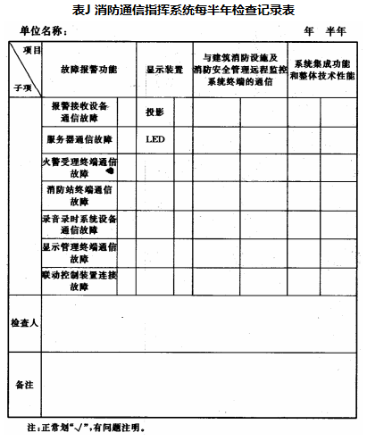 消防通信指挥系统每半年检查记录应按表J填写。