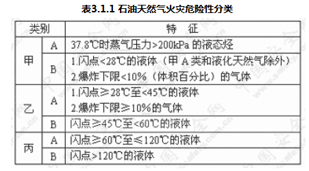 3.1 石油天然气火灾危险性分类