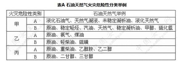 附录A 石油天然气火灾危险性分类举例